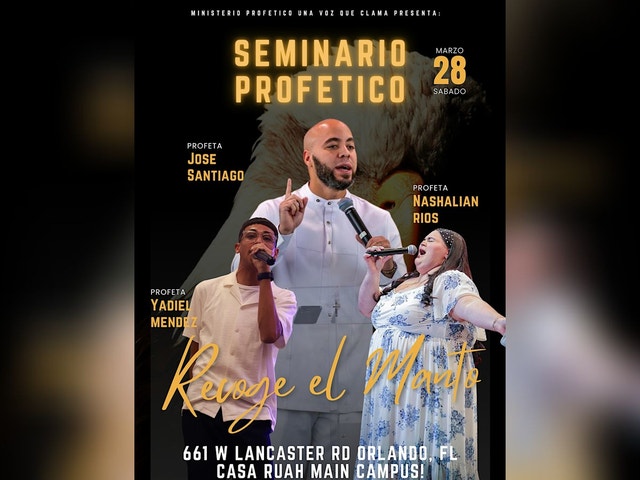 SEMINARIO PROFÉTICO “RECOGE EL MANTO” ¡No te pierdas este increíble evento en persona donde exploraremos el poder de la unción y el llamado profético! Ven y prepárate para recibir imparticion, crecer en tu fe y conectar con otros apasionados por el propósito divino. Es tu momento de recoger el manto y avanzar con autoridad y propósito. ¡Te esperamos!