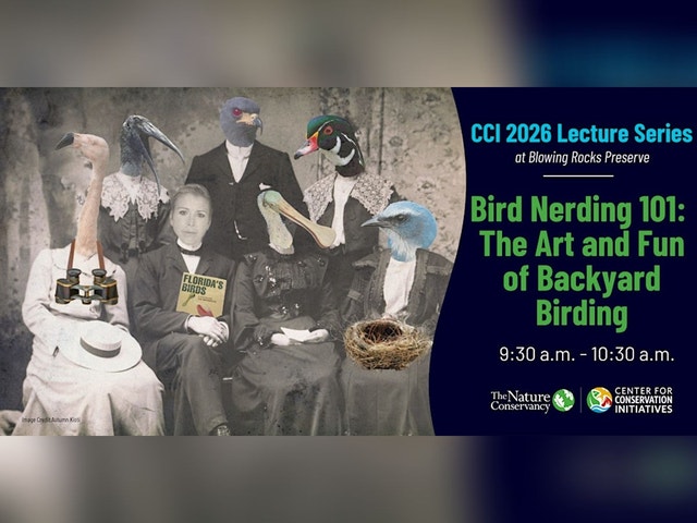 JOIN US THIS WINTER AT THE ANNUAL CCI LECTURE SERIES! WE ARE EXCITED TO WELCOME YOU TO THESE IN-PERSON EVENTS AT BLOWING ROCKS PRESERVE INSIDE THE HAWLEY EDUCATION CENTER'S CLASSROOM. If registration is full, be sure to click the "Get Tickets" button to sign-up on our waitlist! * All lectures are FREE of charge and fill up quickly. * Advance registration is required and space is limited. * Light refreshments provided. * Recommended for adults and youth ages 13 and up. *All attendees under 18 years old MUST be accompanied by an adult. February 11 | 9:30 a.m. - 10:30 a.m. TITLE: BIRD NERDING 101: THE ART AND FUN OF BACKYARD BIRDING Description: Whether you are curious about birds or a full-blown bird nerd, join Audubon Everglades for a fun, inclusive look at birds, bird biology, conservation, identification, and ethical bird watching practices. Nature is for everybody! Learn how to be a part of a global event, the Great Backyard Bird Count, to protect birds around the world by spending time in your favorite places watching birds and submitting your observations to scientists. Don’t miss this year’s community science effort and the joy of birding, even in your own backyard! SPEAKER: AUTUMN KIOTI HORNE Audubon Everglades Director of Education and Outreach Registration closes at 12:00 p.m. on Tuesday, February 10. PLEASE CONTACT US WITH ANY QUESTIONS, CONCERNS, OR REQUESTS. PHONE: 561-744-6668 EMAIL: VISITBRP@TNC.ORG -------------- Be sure to check out the full series [https://www.eventbrite.com/cc/2026-cci-lecture-series-at-blowing-rocks-preserve-4798808] to register for more lecture topics scheduled for 1/28, 2/25, 3/11, and 3/25. All lectures take place 9:30 a.m. - 10:30 a.m.