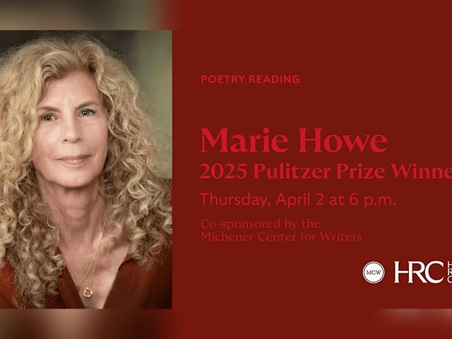 Join us for an evening with author Marie Howe as she reads selections of her recent work, New and Selected Poetry (2024), which recently received the 2025 Pulitzer Prize for Poetry. This event is co-sponsored with the Michener Center for Writers. A reception, signing and book sales to follow. Beverages and florals made possible by Central Market. Marie Howe received the 2015 Academy of American Poets Fellowship and served as the New York Poet Laureate from 2012-2014. Her poems have appeared in the New Yorker, The Atlantic, Poetry, AGNI, Ploughshares, Harvard Review, The American Poetry Review, among others. The recipient of fellowships from the National Endowment for the Arts, the Guggenheim Foundation, and the Academy of American Poets, she currently teaches at Sarah Lawrence College and lives in New York City. This event is co-sponsored with the Michener Center for Writers. Reception made possible by Central Market.