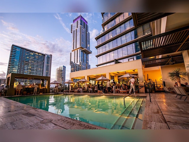 Friday and Saturday nights, the pool deck comes alive with DJ sets, craft cocktails, and bites from La Piscina.
