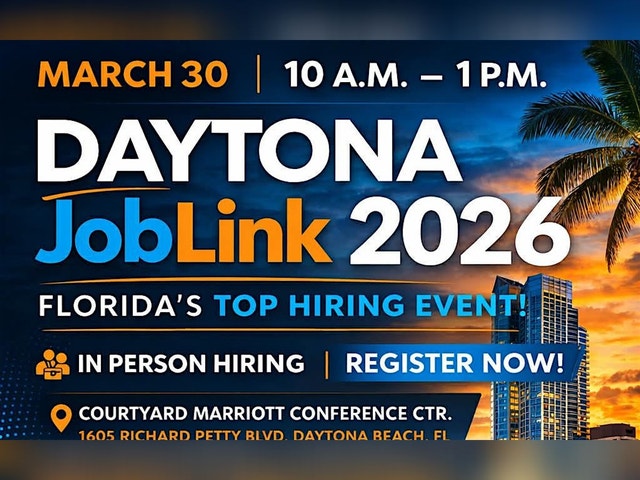 ARE YOU LOOKING FOR NEW OPPORTUNITY? DON'T MISS DAYTONA / VOLUSIA JOB LINK 2026! HUNDREDS OF TOP DAYTONA / VOLUSIA AREA JOBS ARE BEING FILLED ON THE SPOT AT THIS EVENT, *INCLUDING OPPORTUNITIES IN MELBOURNE, COCOA BEACH, DELAND, OCALA, ORLANDO, JACKSONVILLE, ORMOND BEACH PALM COAST AND MORE! OVER 200 JOBS ARE AVAILABLE IN ALL FIELDS! FROM ENTRY LEVEL TO PROFESSIONAL - JOBS INCLUDE EDUCATION, SCHOOL BOARD, LOGISTICS, GOVERNMENT, DRIVING, FINANCIAL, MEDICAL, SALES, TECHNICAL, WAREHOUSE, LANDSCAPING, LAW ENFORCEMENT, TEACHING, HOSPITALITY, FOOD SERVICE, CUSTOMER SERVICE AND MORE! ______________________________ FOR A LIST OF PARTICIPATING EMPLOYERS AND THEIR JOBS, VISIT HTTP://FLORDAJOBLINK.COM! [https://floridajoblink.com] COME GET HIRED ON THE SPOT! ______________________________ IF YOU'RE AN EMPLOYER: THIS IS THE MOST EFFECTIVE, RELAXED FACE-TO-FACE HIRING EXPERIENCE AROUND! YOU'VE BEEN WAITING FOR THIS EVENT! INTERVIEW ON THE SPOT AND HAVE FUN DOING IT! CALL US TODAY AT (813) 892-5502 OR VISIT HTTP://FLORIDAJOBLINK.COM [http://FloridaJobLink.com]. TAGS #UNITED STATES EVENTS #FLORIDA EVENTS #THINGS TO DO IN DAYTONA, FL #DAYTONA #JOB_FAIR #DAYTONA_EVENTS #DAYTONA_CAREER_FAIR #JOB_FAIR_NEAR_ME #DAYTONA_CAREER_FAIRS #DAYTONA_JOB_FAIR #DAYTONA_JOB_FAIRS #DAYTONA_JOBS #DAYTONA_HIRING_EVENT