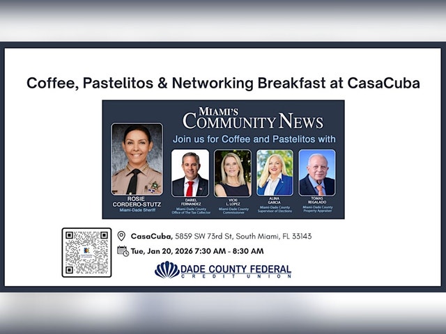 Join us for a lively Coffee, Pastelitos & Networking Breakfast hosted by Miami’s Community News at CasaCuba. Start your morning connecting with business professionals, community leaders, and elected officials in a relaxed and engaging setting. This special networking breakfast will feature remarks from distinguished guest speakers, including: * Rosie Cordero-Stutz, Miami-Dade Sheriff * Dariel Fernandez, Miami-Dade Tax Collector * Commissioner Vicki Lopez * Alina Garcia, Supervisor of Elections * Tomas Regalado, Miami-Dade Property Appraiser Enjoy great conversation, fresh coffee, delicious pastelitos, and meaningful connections while staying informed on issues impacting our community. Location: CasaCuba 5859 SW 73rd St, South Miami, FL 33143 Date & Time: Tuesday, January 20, 2026 7:30 AM – 8:30 AM Don’t miss this opportunity to network, engage with local leaders, and be part of an important community conversation. Reserve your spot and join us! [https://www.doralchamber.org/coffee-pastelitos-networking-breakfast-at-casacuba/]