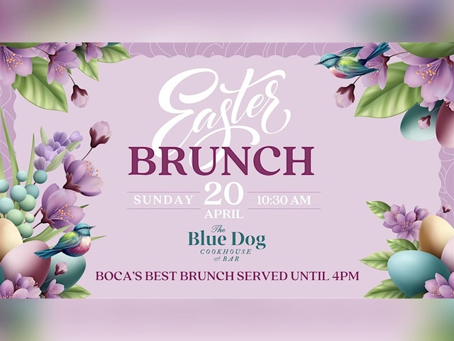 Easter Sunday Brunch at Blue Dog šø Sunday, April 20th 10:30AM - 4:00PM š„š¾āØ RSVP here on Eventbrite for a Complimentary Glass of Bubbles š„ This is not your Dinning Reservation, this is simply an RSVP for a Glass of Bubbles with Standing Room only or First Come, First Serve tables that are available for walk-ins. š° No Cover Charge ⢠For Table Reservations RSVP Open Table: https://shorturl.at/qR1jT š Please call for Reservations 561-961-3330 Town Center at Boca Raton | By the Valet Stand 6000 Glades Road | Free Parking + Valet Available 10:30AM - 4:00PM Brunch Supper Club Sundays 6PM-9PM Late Night Happy Hour 9PM - Close *terms apply* www.BlueDogBoca.com Large Parties: Events@BlueDogNYC.com By clicking this Complimentary Ticket, you are accepting the terms and conditions as well as to be added to our Newsletter or Event Calendars. Thank you for your support!