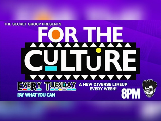 OVERVIEW The Secret Group Presents FOR THE CULTURE EVERY TUESDAY | DOORS 7:30 PM | SHOW 8 PM | PAY WHAT YOU CAN! For the Culture is a sidesplitting stand-up comedy show that celebrates the vibrant humor and unique perspectives of a diverse lineup of comedians. This weekly event promises an uproarious evening filled with laughter, wit, and cultural insights. Featuring an all-star lineup of talented comedians, each show brings forth hilarious anecdotes, sharp observations, and plenty of relatable moments that resonate with audiences from all walks of life.
