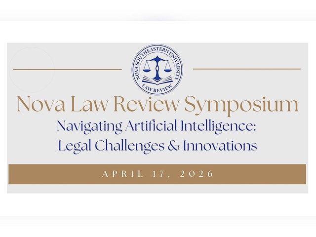 NAVIGATE THE WORLD OF ARTIFICIAL INTELLIGENCE WITH US! Earn CLE Credits while exploring the legal hurdles and cutting-edge innovations shaping today’s rapidly evolving AI landscape. Nova Law Review is proud to host the 2026 Symposium: Navigating Artificial Intelligence: Legal Challenges & Innovations. This event reflects Nova Law Review’s longstanding commitment to advancing legal education and fostering critical discourse on emerging legal and policy issues. The Symposium will be a multidisciplinary event centered on the intersections of artificial intelligence, law, and public policy, and the challenges professionals face as they work to regulate, deploy, and understand these technologies. AI presents two competing realities: unprecedented technological acceleration and a legal framework that struggles to keep pace. These tensions force scholars and practitioners alike to balance innovation, societal risk, and evolving regulatory perspectives. The 2026 Nova Law Review Symposium provides a dynamic forum for scholars, practitioners, technologists, and thought leaders to engage in critical discussions on the most pressing issues in modern AI regulation and governance. This year’s panels will explore emerging challenges such as algorithmic bias and consumer protection, the legal implications of autonomous decision-making systems, and the evolving role of AI in corporate, administrative, and constitutional contexts. Panel discussions will address complex issues including compliance in AI-driven environments, regulatory fragmentation at the federal and state levels, and strategies for ensuring transparency and accountability in algorithmic systems. Additionally, experts will examine ethical considerations surrounding generative AI, privacy and data-use dilemmas, and the risks of over- or under-regulating emerging technologies. By bringing together leading voices in law, technology, and public policy, the 2026 Symposium aims to foster meaningful dialogue and cross-disciplinary collaboration. Attendees will leave equipped with the knowledge and tools necessary to navigate the rapidly shifting landscape of AI regulation and innovation. We look forward to thought-provoking discussions that will shape the future of AI governance and legal reform.
