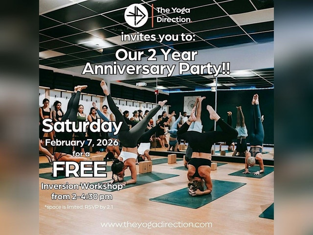 We are turning Two and want to celebrate with YOU!! Join Us for a day of connection & fun at our FREE Inversion Workshop as we celebrate two years of intention, two years of community, two years of shared practice and memorable moments. What to Bring: * yoga mat * water * towel * open mind * a friend