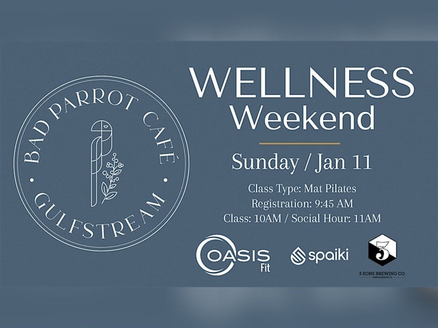 Join us for our Wellness Weekends by Bad Parrot and Oasis Fit, a recurring community event designed to bring movement, connection, and wellness experiences together. Our event begins on January 11th at 10:00 AM with a Mat Pilates class led by Grace, followed by a social hour featuring: * Discounts from Bad Parrot Café * Sponsor activations and special offers WHAT TO EXPECT * Please arrive 15 minutes early for check-in and setup * Bring your own mat and towel * Stay after class to enjoy refreshments and community connections TICKETS Your ticket includes: * Mat Pilates class with Grace * Access to sponsor activations * Exclusive discounts from Bad Parrot Café and participating partners