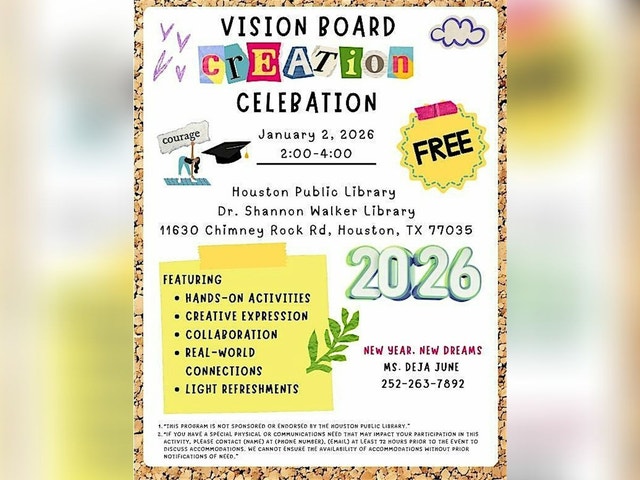 VISION BOARD CREATION CELEBRATION Join us in person for a fun and inspiring session where you’ll craft your very own vision board. Bring your dreams to life, connect with like-minded folks, and get motivated to crush your goals. All materials provided—just bring your creativity and good vibes. Don’t miss this chance to visualize your future in a relaxed, supportive setting!