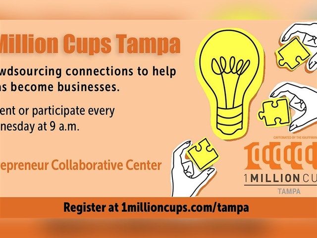 Please note: If this event reflects sold out, we will still accept walk-in attendees. THIS EVENT WILL BE HOSTED IN PERSON. 1 Million Cups Tampa is hosted weekly on Wednesday, 9am - 10am Based on the notion that entrepreneurs discover solutions and engage with their communities over a million cups of coffee, the Ewing Marion Kauffman Foundation developed 1 Million Cups in 2012—a free program designed to educate, engage and inspire entrepreneurs around the country. Through the power of volunteers, 1 Million Cups has grown to more than 160 communities. As a program of the Kauffman Foundation, 1 Million Cups works with entrepreneurs, empowering them with the tools and resources to break down barriers that stand in the way of starting and growing their businesses. Mr. Kauffman believed it was a fundamental right for anyone who had a big idea to be able to bring it to life—and we're here to fulfill that mission.
