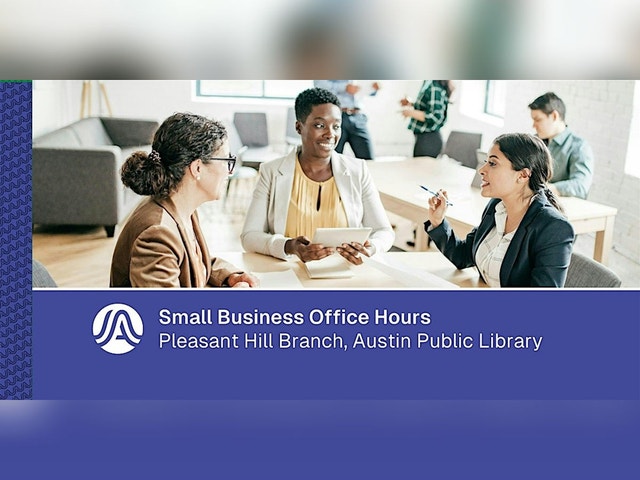 Are you the owner of a certified firm, a small business owner, or resident interested in starting a small business? Join us at City of Austin Small Business Office Hours to connect with resources, programs, and services. Participating departments include Economic Development, Financial Services, Austin Public Library, Austin Energy, and Small and Minority Business Resources. Staff will be on hand to answer questions and make referrals to available programs and services offered by City departments and local business support organizations. No appointments necessary - just show up!