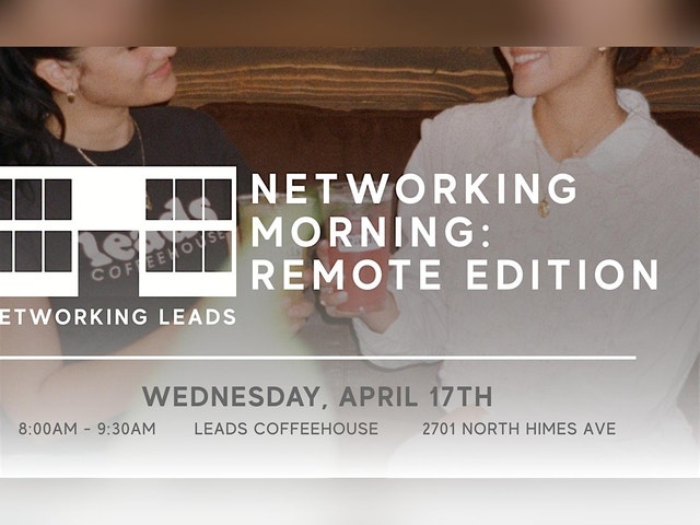 Join Networking Leads at Leads Coffeehouse on Friday, April 17th from 8AM–9:30AM for a morning designed specifically for business professionals who work remotely. Networking Morning: Remote Edition provides a relaxed, welcoming environment to connect with fellow remote workers, exchange ideas, and build meaningful professional relationships. Whether you’re looking to collaborate, share experiences, or simply meet like-minded people, this event gives you the opportunity to expand your network beyond your remote office. Enjoy great coffee, engaging conversation, and a community of professionals who understand the unique challenges and opportunities of remote work. Come ready to connect, collaborate, and leave with new contacts, and maybe even a few fresh ideas to take back to your remote office!