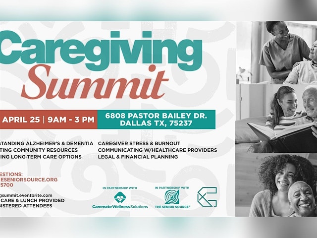 WELCOME TO CAREGIVING SUMMIT 2026! Equipping Families. Strengthening Caregivers. Supporting the Journey. Whether you are caring for a parent, supporting a spouse or preparing for a future caregiving role, this summit is designed with you in mind so you do not have to navigate this journey alone. 🗓 April 25, 2026 ⏰ 9:00 AM – 3:00 PM 📍 Concord Church – Legacy Center Topics at the Summit * Understanding Alzheimer’s & Dementia * Navigating Community Resources * Exploring Long-Term Care Options * Caregiver Stress & Burnout * Communicating with Healthcare Providers * Legal & Financial Planning What You’ll Experience ✔ Practical caregiving tools and next steps ✔ Trusted local healthcare and service providers ✔ Encouraging keynote conversation ✔ Honest panel discussions ✔ Community connection ✔ Spiritual and emotional encouragement ✔ Lunch provided to registered attendees You will leave with real resources, renewed strength, and meaningful connections. This year we are intentionally highlighting and affirming men who serve as caregivers. More men than ever are stepping into primary and shared caregiving roles—as sons, husbands, fathers, and family leaders. This summit creates space to acknowledge that reality and provide support tailored for them. Who Should Attend? * Adult children caring for aging parents * Spouses caring for partners * Men serving in caregiving roles * Ministry leaders * Anyone preparing for a future caregiving season * Members of the broader Dallas community This event is free, but registration is required to help us prepare lunch and materials. For questions, contact: csp@theseniorsource.org Don't miss out on the chance to recharge and grow your caregiving community!