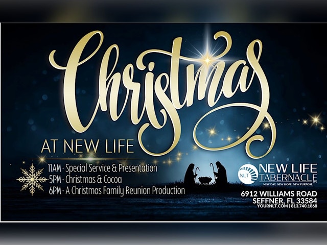 Celebrate Christmas at New Life Tabernacle – Sunday, December 21 The holiday season is here. It’s a time for joy, laughter, and gathering with those we love. This Christmas, New Life Tabernacle invites you to experience the heart of the season through a day filled with worship, celebration, and community connection. On Sunday, December 21 at 11 AM, we’ll host our annual Christmas Service, featuring a stunning theatrical presentation that brings the story of Jesus’ birth to life. It’s a beautiful reminder that Christmas isn’t just about lights and gifts, but about the incredible gift of God’s love made. Surrounded by heartfelt worship, inspiring music, and the warmth of fellowship, you’ll leave uplifted and reminded of the true meaning of Christmas. BUT THAT’S NOT ALL! Return at 5 PM for Cocoa, Treats, Family Photos, & our GRAND Christmas Production Play. Sip on rich cocoa, indulge in festive treats, and capture holiday memories at one of our many themed photo backdrops before the curtain rises on our much-anticipated annual production. This year’s play will take you on a fun, nostalgic journey filled with heartfelt moments and the timeless message that love, family, and faith never go out of style. Whether you come for the worship, the cocoa, or the community, you’ll find yourself surrounded by joy, hope, and belonging. Make this Christmas one to remember — gather your loved ones, wear your favorite holiday sweater, and celebrate the season with us at New Life Tabernacle, where faith, family, and the spirit of Christmas come alive! New Life Tabernacle 6912 Williams Road, Seffner, FL 33584 YourNLT.com