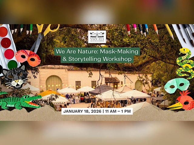 ABOUT THE PROGRAM What We’ll Do: Step into the wild world of the Everglades! In this hands-on workshop, children will design and create their own imaginative masks inspired by the animals and landscapes of this unique ecosystem. Each mask will represent a fantastical creature connected to the Everglades’ rich biodiversity. After crafting their masks, participants will bring their creations to life through movement and storytelling—acting out their creature’s personality and exploring how nature inspires art and play. This program encourages creativity, self-expression, and a deeper connection to Florida’s natural environment. What They’ll Get Out of It: * All materials provided * Guided instruction * A fun, interactive experience combining art, nature, and storytelling Program Details Location: Vizcaya Village Farmers Market Dates: Sunday, January 18th, 2025 Time: 11:00 a.m. – 11:00 p.m. Ages: 5–12 (must be accompanied by a caregiver) General Admission and Member Tickets: Free with RSVP (registration required; capacity is limited and available on a first-come, first-served basis)