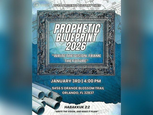 Join us as we gather to "Write the Vision and Frame the Future" together. This is a moment to see God, receive strategy, and align your life with heaven's blueprint for 2026. Date: January 3rd, 2026 @ 4:00 PM Venue: Victory Faith Chapel Orlando- 9456 S Orange Blossom Trail, Orlando, FL 32837 Come expecting insight, revelation, and a fresh vision for the journey ahead. Bring your journal, your faith, and your expectation- God is ready to speak. Don't come alone- invite someone who needs a fresh word, renewed direction, or a prophetic push into their next season. Their future may shift because you brought them. Habakkuk 2:2- "Write the vision, and make it plain".
