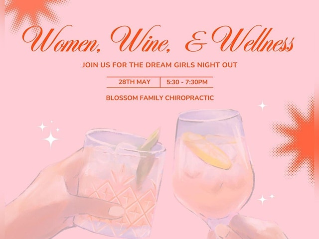 Gather your girls and join us for a fabulous evening of Wine, Women, and Wellness on May 28th from 5:30–7:30 PM at Blossom Family Chiropractic! It’s time for some serious self-care, laughter, and yes — all the wine you can handle! 🍷 This isn’t just any girls' night. We’re bringing together an amazing group of local, female-owned businesses to pamper you in style. Whether you're in the mood for a relaxing massage, a little beauty boost, or some fab shopping, we’ve got you covered. Think: facials, jewelry, Botox, brows, and more! You won’t want to miss this! 💅 Shop local, indulge in some serious self-care, and sip on complimentary wine while you’re at it. From spa treatments to chic accessories, we've got everything you need for the ultimate pampering session. 🍇 Snacks + Sips = Perfection. And did we mention the wine is free? Past events have sold out weeks in advance, so grab your tickets ASAP before they’re gone! Trust us, you won’t want to miss this night of pure fun. 🎟️ Tickets are FREE, but they go fast! RSVP now to secure your spot and be part of this epic girls' night. Let the good times begin! 🥂