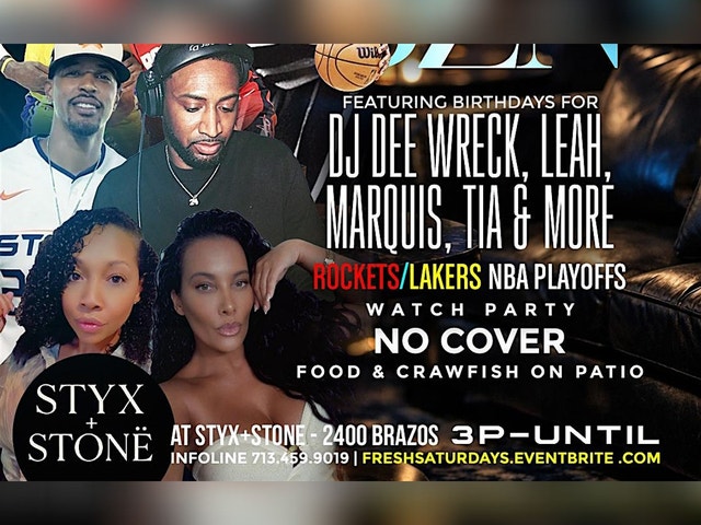 A Few Good Men x Steve Rogers x Janky Joe x Jason Miranda x inDmix Present F.R.E.S.H SATURDAYSDAY PARTY SERIES New Saturday Funday Destination At STYX + STONE 2400 Brazos St Houston TX [Midtown Houston] 3p-9p 3 Levels | Indoor & Outdoor | Food | 4 DJs Reserve at FreshSaturdays.eventbrite.com Infoline 713.459.9019