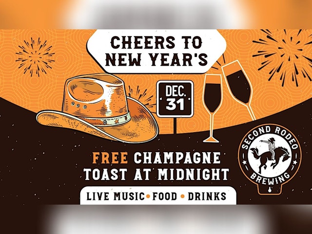 Boot-scoot into 2026 at Second Rodeo Brewing! Come for the tunes, stay for the brews, and welcome the New Year with your favorite people. š„ Complimentary Champagne Toast at Midnight for 21+ (while supplies last) HOLIDAY HOURS: New Year's Eve: 11AM-1AM New Year's Day: 11AM - 12AM šļø NO TICKET REQUIRED. Reserving a ticket does not reserve a seat, table, or standing area, does not allow line-skipping, and does not guarantee entry. Admission is first-come, first-served and subject to venue capacity. Once capacity is reached, entry may be paused or denied regardless of ticket status. Tickets are offered solely so this event can be listed on the platform and to help guests save the date.