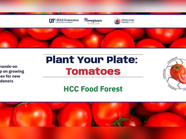 Welcome to Plant Your Plate: Tomatoes @ The HCC Food Forest Brandon Campus! Join us at the garden at 10451 Nancy Watkins Drive, Tampa for an in-person demonstration that will give you the opportunity to get your hands dirty and connect with fellow gardening enthusiasts. Whether you're a seasoned gardener or just starting out, this event is perfect for anyone looking to incorporate tomatoes into their diet. Don't miss out on this chance to grow your own tomatoes and enjoy the fresh flavors straight from your garden! Plan to attend every Wednesday from 9am - 10am to learn the following: * Wednesday, March 4th - Week 1: Microirrigation * Wednesday, March 11th - Week 2: Planting * Wednesday, March 18th - Week 3: Fertilizing * Wednesday, March 25th - Week 4: Pruning * Wednesday, April 1st - Week 5: Pest Management * Wednesday, April 8th - Week 6: Harvesting and Seed Saving Note: You must register for each workshop separately! You can find the other workshops here. [https://www.eventbrite.com/cc/plant-your-plate-4587733] New to gardening and growing your own food? Plant to attend the "Triple Workshops" to learn how to lay micro-irrigation, set up a rain water harvest system, and implement backyard composting. More info here [https://www.eventbrite.com/o/ufifas-hillsborough-extension-8606873308].