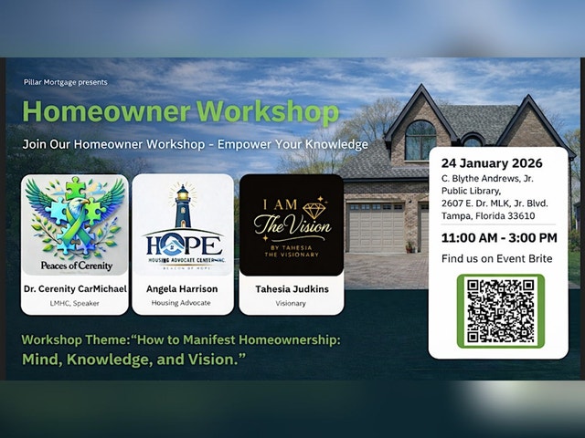 🏡 HOMEOWNERSHIP WORKSHOP: 2026 GOALSETTER START 2026 WITH MOCKTAILS, VISION BOARDS & A LIGHT BRUNCH FREE Event Kick off 2026 with clarity, confidence, and a plan! This interactive Homeownership Workshop is designed for future homeowners who are ready to set intentional goals and take the first steps toward buying a home in 2026 and beyond. Sponsored by Hope Housing Advocate Center, Inc. (501(c)(3)), in partnership with I AM THE VISION and Peaces of Cerenity. 🌟 WHAT YOU’LL EXPERIENCE: Keys to Ownership: Mindset, Vision & the Mortgage Process✔ A hands-on Vision Board session to map your journey 🧠 Education + Action * Keys to Ownership: Mindset, Vision & the Mortgage Process * From Dream to Deed: The Homeownership Blueprint * The Path to Homeownership: Knowledge That Builds Equity * Homeownership 101: Think Smart. Plan Strong. Buy Confidently. 🧠 INTERACTIVE + FUN: 🍹 Mocktails provided 🖼️ Vision boards available on-site 🥐 Light brunch included 📌 Feel free to bring your own magazines or materials 🎯 WHO SHOULD ATTEND: * First-time homebuyers * Renters planning to buy in 2026 or later * Anyone ready to align mindset, finances, and vision for homeownership 📅 SAVE YOUR SPOT Space is limited. Register today and take the first intentional step toward your future home. I AM THE VISION. I AM THE PLAN. I AM THE FUTURE HOMEOWNER.