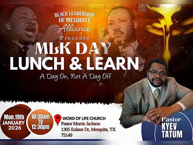Join us for an MLK Day On, Not a Day Off Lunch & Learn as we come together to reflect on the state of the Black community in 2026, honoring the legacy of Martin Luther King Jr. through action, dialogue, and service. This gathering will feature meaningful conversation, community awards recognizing local impact, and words from guest speaker Pastor Kyev Tatum. Lunch will be provided, generously sponsored by IHOP. Come ready to learn, connect, and continue the work.