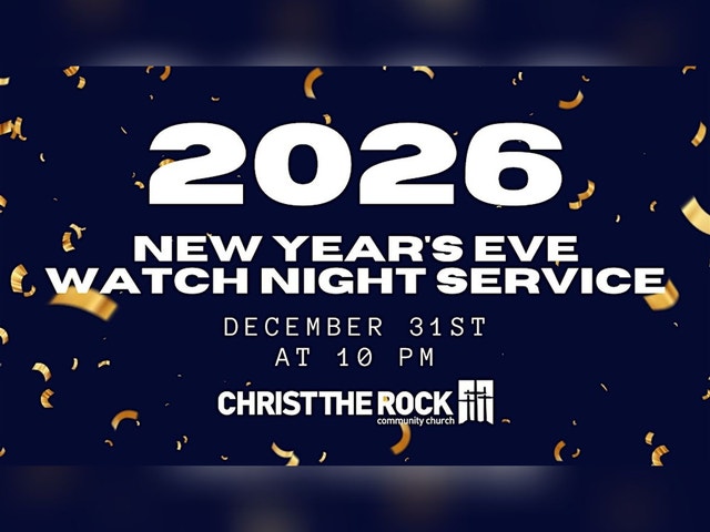 Mark your calendars! Let’s bring in the New Year together! Join us on Wednesday, December 31st at 10 PM as we worship and celebrate all that God did in 2025! When: December 31, 2025 10:00 PM - January 1, 2026 12:00 AM Where: Christ the Rock Community Church [https://crcconline.org/]11000 Stirling Road, Cooper City, FL 33328 Get Directions