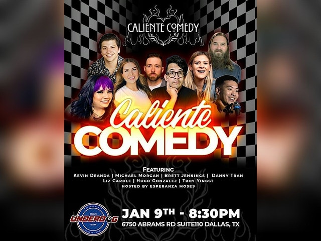 Caliente Comedy presents a FREE COMEDY SHOW 🔥 📍 Underdog Sports Club – Lake Highlands 📅 January 9th ⏰ 8:30 PM 📍 6750 Abrams Rd, Suite 110, Dallas, TX Featuring an absolutely fuego line up comedian after comedian that will have you laughing with so much talent in one night🔥 RSVP YOUR SPOT! 🎙️Kevin DeAnda 🔥Michael Morgan 😂Brett Jennings🎙️Danny Tran 🔥Liz Carole 😂 Hugo Gonzalez🎙️Troy Yingst🎤 Hosted by: Esperanza Moses Lake Highlands pull up early, bring your people, and help us set the tone for a hilarious year ahead and fill up Underdog! 🎙️ enjoy the drinks, food, & laughter!