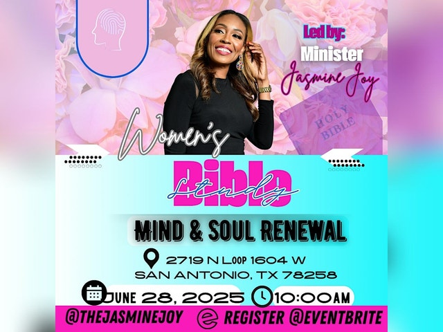 Ladies, are you ready to experience renewal in your mind and restoration in your soul? Join Jasmine Joy, a faith-based trauma therapist and prophetic teacher, for a transformational women's Bible study designed to equip you with spiritual truths and therapeutic tools for breakthrough. This intimate gathering will be a sacred time of prayer, reflection, and revelation, where we will explore biblical principles of healing, emotional wellness, and mental renewal. If you've been carrying the weight of stress, past wounds, or simply need to reset and refocus, this gathering is for you!