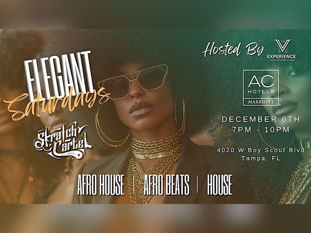 Join us for Elegant Saturdays on DECEMBER 6TH, 7-10pm! No cover, full bar, delectable food, hookah & cigars available. Immerse in classy vibes with Afro house, top 40, Afrobeat, Amapiano & Caribbean tunes. Elevate your night with table service! Curated by Skratch Cartel