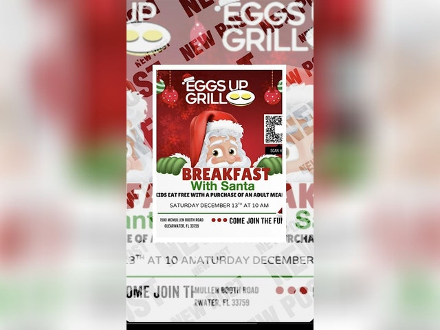 Bring the whole family for a magical morning with Santa Claus at Eggs Up Grill! π Kids will enjoy a festive breakfast experience, photos with Santa, and holiday cheer. π³ Special Offer: Kids eat FREE with the purchase of an adult meal! π Date & Time: Saturday, December 13th at 10:00 AM π Location: Eggs Up Grill 1500 McMullen Booth Road Clearwater, FL 33759 π What to Expect: β’ Delicious breakfast from Eggs Up Grill β’ Meet & Greet with Santa π β’ Fun family atmosphere full of holiday spirit β’ Memories that will last a lifetime β¨ Donβt miss out β space is limited! Bring your holiday spirit and your appetite. π Come join the fun and make this holiday season unforgettable!