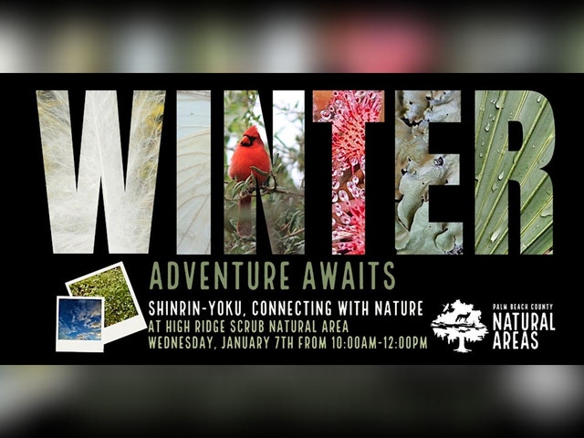 REGISTRATION OPENS 12/22 AT 12:00PM WHY: Relaxation technique to help alleviate irritability, lower blood pressure, and increase focus. DETAILS: ERM staff will guide you on a modified version of Shinrin-yoku, the Japanese practice of forest bathing, the art of connecting with nature through our senses. All you have to do is accept the invitation, Mother Nature does the rest. Participants will be led on a slow-paced, quiet 1.75 mile walk through the scrub on sandy and paved trails. Every so often, ERM staff will instruct the group to complete passive activities designed to help you focus your senses to physically and mentally connect with nature. Cell phones should be turned off completely prior to the hike to limit distractions. This event IS NOT designed for small children. Bring a towel to sit on for your own comfort. Dress for the weather (heat, sun, wind, cold, rain) and bring a refillable water bottle. This site does not have restroom facilities.
