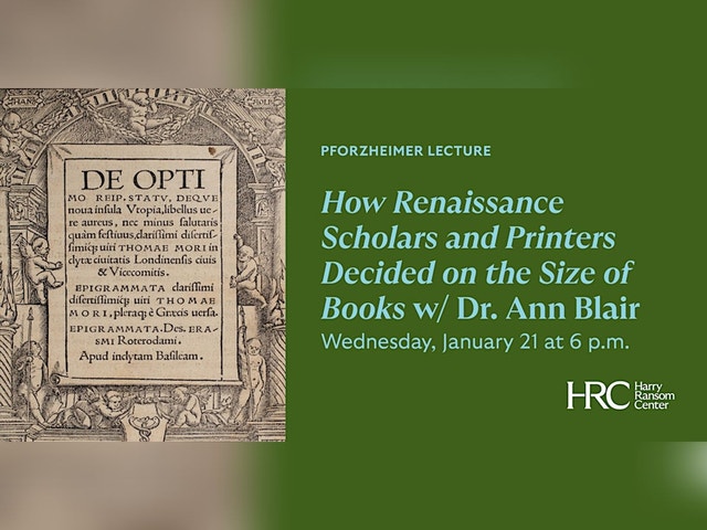 Printing in early modern Europe made few technical constraints on the size of books, which could range from very large to small in format and in length. Instead, commercial and cultural factors determined the size of books in various genres. In particular, strong partnerships between learned authors and printers in the sixteenth century helped establish norms for the publication of books in Latin. Examples will include the publication patterns of the famous humanist Erasmus (d. 1536) with his Basel printers, and of the naturalist Conrad Gessner (d. 1565) in Zurich. Ann Blair is the Carl H. Pforzheimer University Professor in the Department of History at Harvard University where she teaches book history and early modern European cultural and intellectual history. Her research focuses on the working methods of scholars and authors ca. 1500-1700. She has studied for example practices of reading and note-taking, of composing and using reference works and finding devices, paratexts, and, in her book currently in production, the role of amanuenses. Her publications include: Too Much To Know: Managing Scholarly Information Before the Modern Age (2010); Information: A Historical Companion (2021) co-edited with Paul Duguid, Anja Goeing, and Anthony Grafton; and, due out in summer 2026, In the Scholar’s Workshop: Hidden Histories of Collaboration and Authorship. The event will be livestreamed on YouTube. [https://www.youtube.com/live/u16QHaIhVoc]