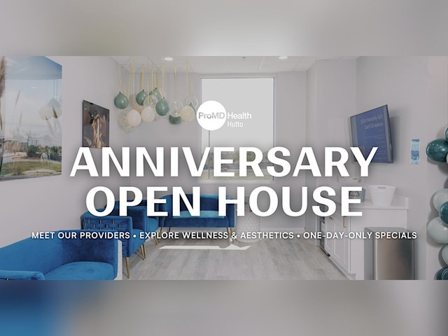 We’re celebrating our ProMD Health Hutto anniversary with an Open House, and you’re invited! Stop by to meet our providers, learn more about emerging wellness and aesthetic services, and explore how treatments like hormone replacement therapy (HRT) and advanced aesthetics can support your long-term health and confidence. This is a relaxed, come-and-go event—whether you’re stopping in to learn, celebrate with us, or take advantage of exclusive anniversary pricing, we’d love to see you. ✨ Anniversary-only specials will be revealed soon—stay tuned! 🎟 ANNIVERSARY RAFFLE * In-person purchases receive one raffle ticket * RSVP on Eventbrite now and receive an additional raffle ticket * Great prizes are available throughout the day 💳 HOW TO PARTICIPATE ✔ Stop by the office during event hours ✔ Or call the office to purchase during the event 🍾 OPEN HOUSE PERKS * Meet & connect with our ProMD Health providers * Learn about wellness, aesthetics, and HRT services available in Hutto * Lite snacks and refreshments provided * One-day-only anniversary offers ✨ WHAT WE’RE TEASING Anniversary pricing will include select offers on: * Injectable banking options * Dermal fillers & lip treatments * Collagen-stimulating services * Skin rejuvenation treatments * Skincare product savings 👉 Full details coming soon. 📌 IMPORTANT NOTES * Anniversary specials available Friday only * Some offers may have purchase limits * Quantities are limited RSVP now to celebrate our anniversary with us and receive an extra raffle ticket when you attend!