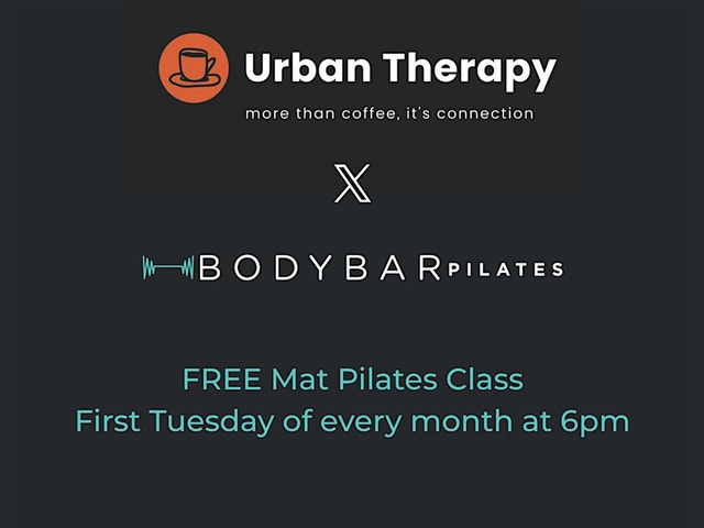 BODYBAR Pilates and Urban Therapy are excited to offer a pop-up mat Pilates class! Come and get a head-to-toe workout in just 50 minutes! This class will prep you for a Pilates reformer class and get the most out of your legs, arms, and abs with energizing variations of lunges, planks, pikes, crunches, and more. This class is complimentary and starts at 6pm, so please arrive 10 minutes early for a smooth check-in and don’t forget to bring a mat, water, and an optional set of hand weights. At the end of class, hang out and grab a drink, smoothie, or acai bowl and get a chance to sign up for a Free Pilates Reformer class at BODYBAR. Please sign up if you are guaranteed to attend, as space is limited . See you there! Questions? Please email Sarah Chaves, sarah.chaves@bodybarpilates.com