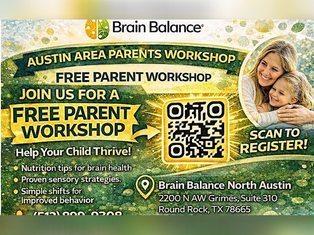 Event Name: Free Parent Open Session: Nutrition + Sensory Strategies Description: Join us for a free, parent focused open session at Brain Balance Round Rock. This is a discussion group style event where we’ll share practical tools and answer questions about: • Nutrition routines that support focus and regulation • Sensory management strategies for home/school • Autism support and behavior approaches • What to do when big feelings show up You’ll also get a chance to tour the center and meet our team. RSVP required – limited seating.