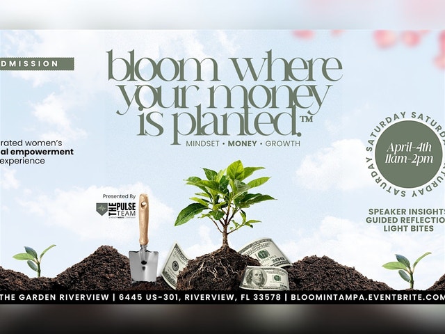 Bloom Where Your Money Is Planted™ is a free women’s financial empowerment experience presented by WealthWave x The Pulse Team Tampa. This curated event guides attendees through a structured Financial Garden framework designed to bring clarity, confidence, and long-term direction to their financial journey. During this interactive experience, you will move through four key stages: 🌱 Planting Gain awareness of where your money is currently planted and what financial habits are shaping your future. 🌿 Nurturing Identify what requires consistency, care, and intentional decision-making to grow. 🛡 Protecting Learn strategies to safeguard income, assets, and future stability, including planning considerations such as risk management and real estate. 🌸 Growing Define long-term goals and commit to sustainable financial growth and legacy planning. Each attendee will receive and complete a guided Financial Garden reflection workbook during the event. Whether you are beginning your financial journey or refining your long-term strategy, this experience is designed to help you plant with intention and grow with purpose. This is a guided educational experience. No products will be sold during the event.