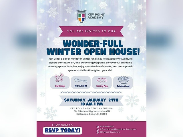 Join us for a day of hands-on winter fun at Key Point Academy Aventura! Explore our STEAM, art, and gardening programs, discover our engaging learning spaces in action, and enjoy our selection of snacks along with special activities throughout your visit.