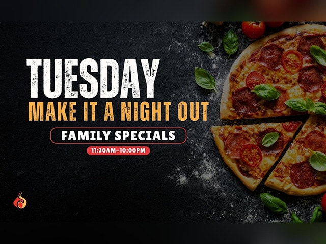 Make Tuesdays a night to gather, share, and enjoy something delicious together. Our Tuesday Family Special is designed to bring everyone to the table with a complete, satisfying meal at an unbeatable value. Enjoy one large pizza made fresh with quality ingredients, paired with a crisp, refreshing salad and four drinks — all for just $29.99. It’s the perfect combination for family dinners, casual get-togethers, or an easy midweek meal without the stress of cooking. Whether you’re craving classic flavors or sharing slices around the table, this special makes it simple to enjoy great food and great company. Join us every Tuesday and turn an ordinary weekday into something worth celebrating. Offers are subject to change without notice.
