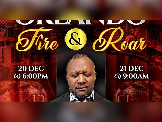 Welcome to the Orlando Fire & Roar Conference! Date: December 20 - 6:00 pm - December 21- 9:00 pm Location: 600 N Lake Destiny Rd, Maitland, FL 32751 Join us for a day filled with the Holy Spirit, Prophecy, and Power! We will root out witchcraft, declare the blood of Jesus over your bloodline, expose spirits of darkness and idolatry. We will battle in the Realms of the Spirit to un-seat demonic thrones and recover the people of this city for the Lord. Don't miss out on this Prophetic event. See you there in Jesus Name!