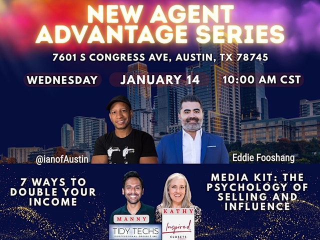 Date & Time: January 14, 2026, at 10:00 AM CDT Location: 7601 S Congress Ave STE 300, Austin, TX 78745 - Showroom 🧠EVENT 1: THE PSYCHOLOGY OF SELLING AND INFLUENCE Speaker: Eddie Fooshang Unlock the psychology behind buyer decisions and master influence strategies that turn conversations into closings. Selling isn’t just about knowing contracts or scripts—it’s about understanding people. In this seminar, Eddie will break down the psychology of why buyers say “yes,” the science of influence, and how top agents use these principles to prospect, present, and close with confidence. Through proven frameworks and real-world examples, you’ll learn how to build trust, overcome objections, and create urgency without pressure—so you can win more clients and grow your business. Key Takeaways: * Understand buyer psychology, cognitive biases, and emotional triggers * Apply Cialdini’s 6 Principles of Influence to real estate sales * Build trust and rapport quickly with purposeful prospecting * Use proven scripts and language patterns that convert * Master closing techniques that feel natural and client-friendly * Adopt daily habits and mindset shifts of top-producing, influential sellers 💰 EVENT 2: THE INCOME MULTIPLIER: 7 STEPS TO DOUBLING YOUR BUSINESS Speaker: @ianofAustin Practical, actionable moves that top agents use to scale faster—and earn more—without burning out. If you’re tired of working harder without seeing bigger results, this class is your blueprint. Learn seven proven strategies that will help you generate more leads, close more deals, and grow your income—without adding endless hours to your day. Key Takeaways: * 7 proven income-multiplying tactics that work in any market * Systems to boost productivity and scale your pipeline * How to move from “busy agent” to “high-earning agent” Who Should Attend: This event is perfect for real estate agents, team leaders, and brokers looking to scale their business while fostering meaningful client relationships. Manny with Tidy Techs to co-sponsor and provide light snacks/food Have Questions? DM @ianofAustin on Instagram (yes, I’m the guy in the hat and graphic t-shirts), or call/text me at 512-774-4621 (be sure to include your name!). Don’t miss this opportunity to gain insights, learn practical strategies, and connect with like-minded professionals in South Austin. Let’s make 2026 your breakthrough year!