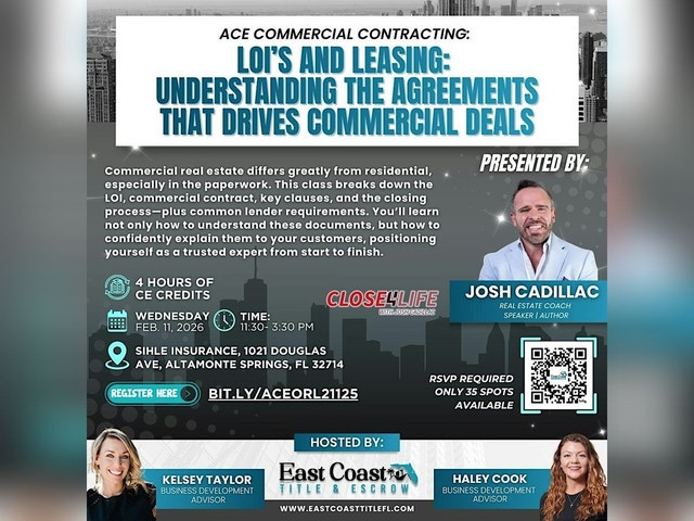 LOI’S & LEASING: UNDERSTANDING THE AGREEMENTS THAT DRIVE COMMERCIAL DEALS Join us in person to dive deep into the world of Letters of Intent (LOIs) and leasing agreements. Whether you're new to commercial deals or just looking to sharpen your skills, this event breaks down the key agreements that keep the industry moving. Come ready to learn, ask questions, and get a clear understanding of the essentials that drive successful commercial property transactions!