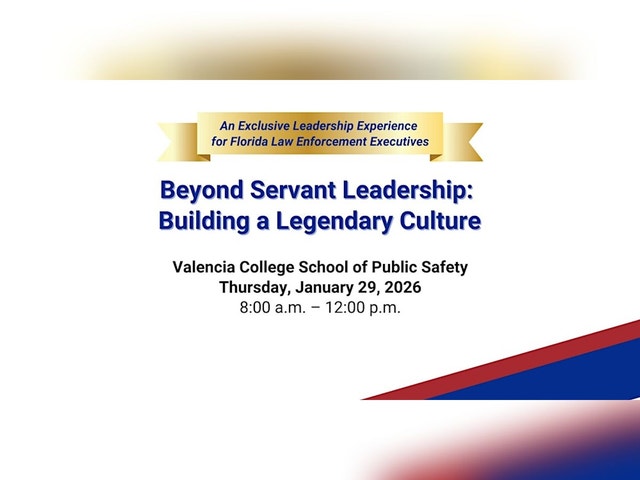Beyond Servant Leadership: Building a Legendary Culture is a leadership development program built with today’s public safety in mind. In today’s fast-moving, people-first workplace, it is critical that YOU not just manage but inspire your teams. This course will equip public safety leaders, including those in law enforcement, corrections, fire and rescue, and emergency management, to lead with the relational intelligence, confidence and tools to lead with trust, purpose, and integrity. Why Attend? Florida’s public safety leaders face historic challenges, including diminished recruitment and retention, strained morale, and building community trust. This exclusive pilot session gives attendees a first look at a groundbreaking leadership program before its national launch. This event is part of our complimentary pilot phase, created for agencies interested in exploring the program before full rollout. Program Highlights This one-day experience equips public safety leaders with proven strategies to: * Strengthen loyalty through authentic connections. * Inspire commitment by linking daily work to mission and impact. * Balance accountability with compassion to elevate culture and performance.