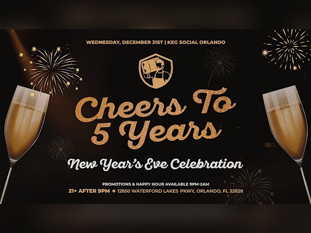 🎉 Join us as we celebrate 5 incredible years at Keg Social Orlando! 🎉 Ring in the New Year and our 5-year anniversary with a night full of games, giveaways, drinks, and nonstop fun. ✨ Event Highlights: • $5 Happy Hour Specials • $5 Arcade Cards • $10 Unlimited Bowling • 5-Year Anniversary Raffle with exciting giveaways • Midnight Champagne Toast Whether you're coming for the drinks, the games, or the party vibes, this is the perfect way to close out the year with friends and celebrate another amazing milestone with us. 📍 Keg Social Orlando ⏰ Promotions & Happy Hour Available from 9PM–2AM 🔞 21+ after 9PM Let’s toast to the past five years—and to many more ahead. See you there! 🥂