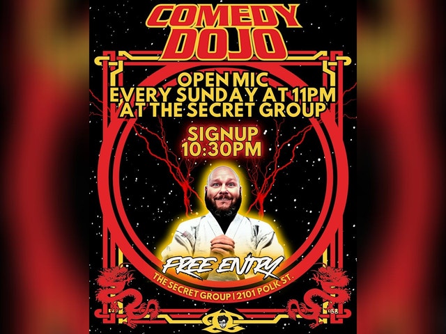 The Secret Group Presents COMEDY DOJO OPEN MIC FREE | 21+ | SUNDAYS @ 11PM | SIGN UP AT 10:30 PM Every week, you can witness Houston's best and brightest comedians doing short sets alongside some up and coming talent. There's lots of street parking, there's never any cover, and drinks/laughs are cheap!