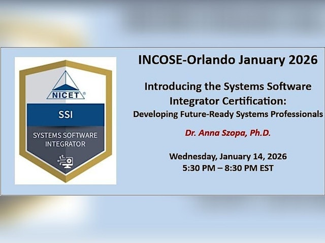 About this event Monthly meetings are open to everyone; you do not have to be an INCOSE member to attend. Dinner is provided by the INCOSE Orlando Chapter and there is no cost to attend. If you are not a member, we invite you to become a member of the Orlando Chapter of INCOSE (http://www.incose.org/about/Membership/Join). About the Presentation: As systems become increasingly software-intensive, there is a growing need for professionals who can effectively integrate software, systems engineering, and organizational processes. To address this demand, NICET has introduced the Systems Software Integrator (SSI) certification, validating competencies critical to modern systems integration roles. This presentation introduces the SSI certification and a professional-focused course currently under development at the University of Central Florida (UCF) designed to prepare industry practitioners for certification and applied systems integration challenges. The session will highlight how key SSI competencies—such as systems thinking, lifecycle integration, requirements management, verification and validation, and software–systems alignment—are translated into practice-oriented learning experiences. Attendees will learn how professional certification and targeted education can help close workforce skills gaps in software-intensive systems, and how industry and academia can collaborate to develop future-ready systems professionals. About the Presenter: Dr. Anna Szopa is an Associate Lecturer in the Department of Industrial Engineering and Management Systems at the University of Central Florida. She specializes in systems engineering, software-intensive systems, innovation, and responsible integration of emerging technologies. Dr. Szopa teaches graduate and professional courses in systems engineering, research methods, innovation, and systems software integration, with a strong emphasis on applied learning and industry relevance. She is actively engaged with INCOSE and NICET to align academic and professional education with workforce certification pathways, including the development of a professional course supporting the Systems Software Integrator (SSI) certification. Her work focuses on bridging academia and industry, advancing systems thinking in practice, and preparing engineers to operate effectively in complex, interdisciplinary environments.