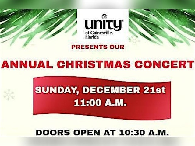 Unity of Gainesville, Florida warmly invites the community to celebrate the season at their Annual Unity Christmas Concert, an inspiring musical event featuring renowned performers. Mark your calendar for Sunday, December 21, and join us for a heartwarming celebration of music, community, and holiday spirit. This year’s featured performers include: * Penta Rose: A celebrated singer-songwriter known for her soulful melodies and captivating performances. Learn more about her music at https://linktr.ee/pentarosemusic [https://linktr.ee/pentarosemusic]. * Shana Smith is an award-winning singer/songwriter known to family audiences as "Shana Banana," and she has also garnered rave reviews from Nashville Scene, which called her "a cross between Joan Armatrading and the jazzier excursions of Joni Mitchell." She is also a Florida Book Award author and a Zen and Yoga/Qigong teacher. More info at www.WildFloridaWoman.com [http://www.wildfloridawoman.com/] * Event Details: * When: Sunday, December 21 * Time: Doors open at 10:30 AM | Concert begins at 11:00 AM * Where: Unity of Gainesville,Florida * 8801 NW 39th Ave, Gainesville, FL [https://www.google.com/maps/search/8801+NW+39th+Ave,+Gainesville,+FL?entry=gmail&source=g] * Cost: Free entry (Donations encouraged) The Unity Christmas Concert is free to attend, but space is limited. Families and community members are encouraged to reserve their tickets in advance