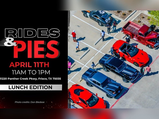 šš Rides & Pies at Halo - Lunch Edition ššļø When? Every 2nd Saturday! Next one: April 11th, 11am to 1pm Where? Halo Pizzeria - 11220 Panther Creek Pkwy, Frisco, TX 75035 Cruise on down to Halo Pizzeria for a sizzling combo of epic rides and delectable pies! Cars & Motorcycles are all welcome! With ample space in our parking lot, you'll have the perfect opportunity to showcase your beloved wheels and connect with fellow car enthusiasts in a lively and welcoming atmosphere. Whether you're a proud owner of a classic vintage car, a sleek sports car, or a modified masterpiece, there's a spot for you at Rides & Pies. š„ FOR CARS & MOTORCYCLE SHOWING: Show your 'Park Up Front' Registration and unlock the ultimate treat - FREE pizza slices PLUS a drink! šš„¤ RSVP: https://app.parkupfront.com/event/10576 [https://app.parkupfront.com/event/10576]