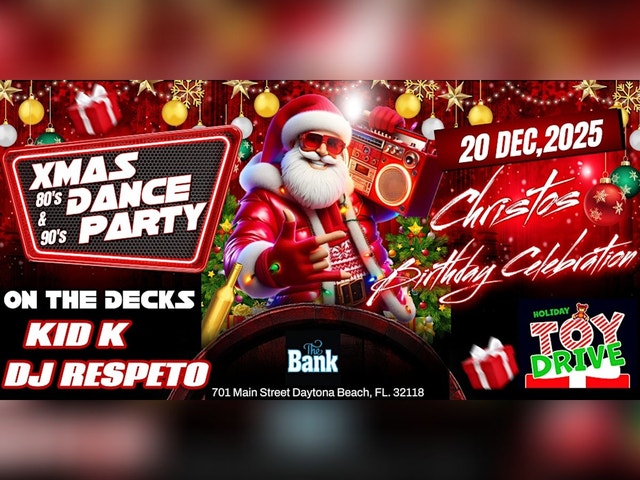 🎄 Christos Annual Christmas Freestyle & Old School Dance Party + Toy Drive! 🎁 Saturday, December 20th • The Bank, Daytona Beach Get ready for a holiday celebration with heart! Christomeli Productions invites you to our Christmas Freestyle and Old School Dance Party—a night packed with classic 80’s & 90’s throwbacks, feel-good vibes, and a mission to make the season brighter for local kids. ✨ Admission: Donate any amount or simply bring a toy for the kids! Every dollar and every toy goes directly toward giving children a joyful Christmas. ❤️ Join us at The Bank in Daytona Beach as our DJs spin all your favorite freestyle, old school, Latin, and dance classics. Bring your crew, hit the dance floor, and help spread holiday cheer in the most meaningful way. Let’s party with a purpose—because ain’t no party like a Christos party! 🎶🔔 🎧 Spinning all your favorite throwback hits: • DJ Kid K • DJ Respeto 📅 Date: Saturday, December 20th 📍 Venue: The Bank — 701 Main Street, Daytona Beach, FL 32118 Doors Open at 7pm Bring your crew, your best dance moves, and your holiday spirit — this is one Christmas party you don’t want to miss!