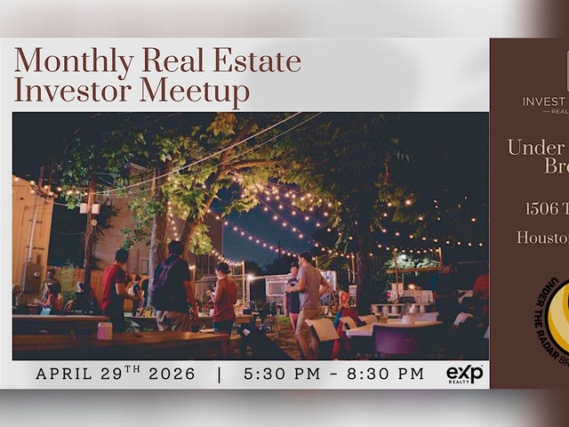 Welcome to the Real Estate Investor Meetup at Under The Radar Brewery! Join us on April 29, 2026 at 5:30 PM (Central Time) for an evening of networking and learning. Whether you're a seasoned investor or just starting out, this event is perfect for connecting with like-minded individuals. Don't miss this opportunity to share ideas, strategies, and maybe even find your next investment opportunity. See you there! What you can expect: * A great turnout of real estate investors, both new and experienced * A laid-back setting to network, share ideas, and talk deals * Plenty of space to relax with a pint and good company If you have questions, feel free to call or text at 281-250-0650 or email at investinhoustonteam@gmail.com [https://www.eventbrite.com/preview?eid=1980892294176]