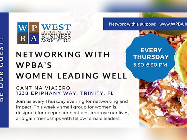 Welcome to the WPBA's Thursday Evening Focus Group! Join us for our weekly small-group networking event at Cantina Viajero. This is the perfect opportunity to meet like-minded individuals, share ideas, and build connections in a relaxed setting. Whether you're a seasoned professional or just starting out, this event is open to all guests looking for a network and friendships beyond the business card and elevator pitch. Come ready to engage, learn, and have a great time! We can't wait to see you there! Guests are encouraged to attend once or twice before committing to joining us as a member. If you are looking for a space to grow your business and your connections in a meaningful way, this is the group for you. Learn more about WPBA Partnerships: wpba.biz [http://wpba.biz/] About The West Pasco/Pinellas Business Association (WPBA): The West Pasco Business Association (WPBA) is a business networking group of 160+ businesses and nonprofits working together to strengthen our community. Since its founding in 2010, WPBA has disbursed over $3 million locally to help families and individuals in crisis, while also creating programs that support small business growth, workforce development, and nonprofit collaboration. WPBA continues to expand its impact through initiatives like: • WPBA Serves – monthly service projects supporting local charities, food pantries, and neighbors in need. • Community Connections Program – linking businesses with nonprofits for greater community-wide impact. Our partners attend monthly and weekly community events, and change lives at the same time. We host multiple signature annual events, allowing us to put hundreds of thousands of dollars back into our local communities of Pasco and Pinellas through charitable giving. Together, we celebrate growth, show up for each other, and make a tangible difference across Pasco and Pinellas Counties. WPBA: Where businesses connect, communities thrive, and impact multiplies.